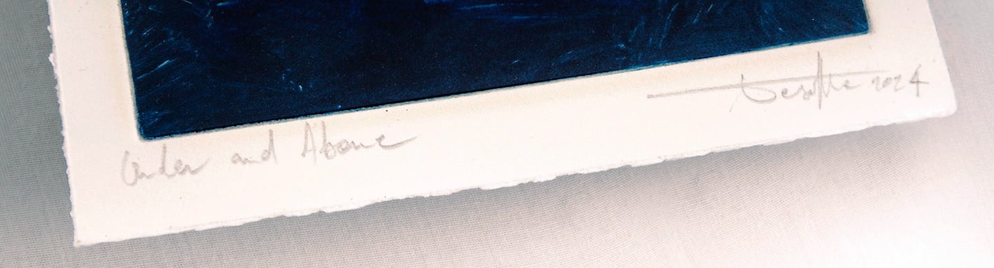 Choisissez votre monotype parmi ces cinq exemplaires, il sera signé et daté. Ils ont été réalisés dans les ateliers de l'Imprimerie Nationale sur une presse du XVIIIe siècle sur laquelle les grands artistes Corot, Whistler et Millet se sont succédés. C'est donc une (dé)peinture unique réalisée sur papier Arches 200gr et encres taille-douce. Elle vous est envoyée avec le livre en édition limitée.